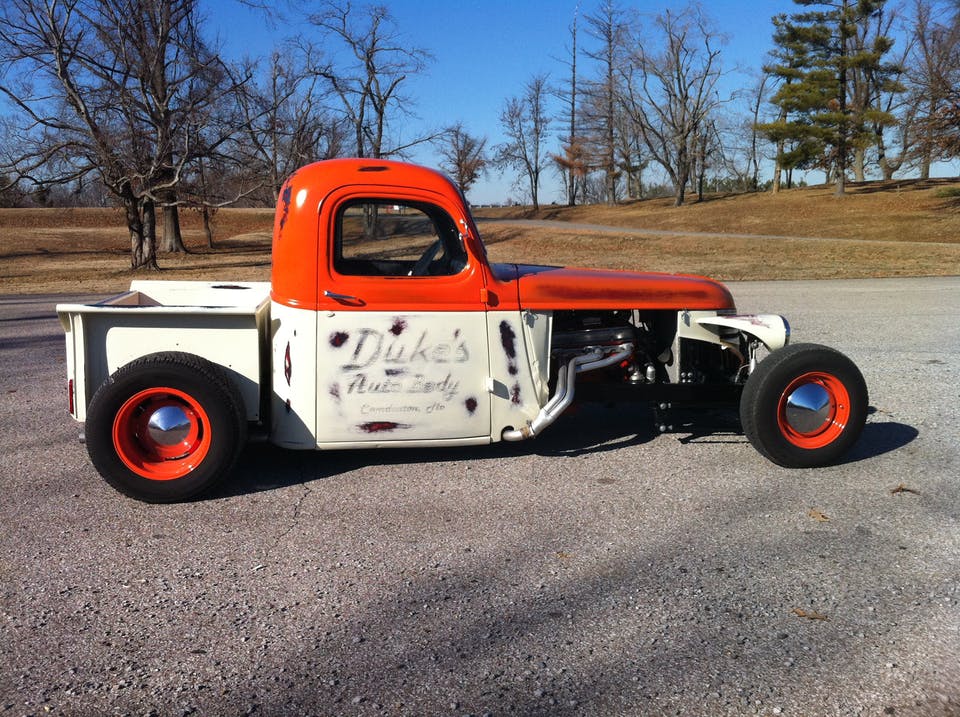 Mange rat rods er bygget pรฅ gamle coupรฉ-modeller fra 20’erne og 30’erne, sรฅ den her pickup skiller jeg faktisk lidt ud. Men den holder stadig stilen med rรธde fรฆlge, hvid dรฆkkant, mat lakering og et simpelt og rรฅt look.