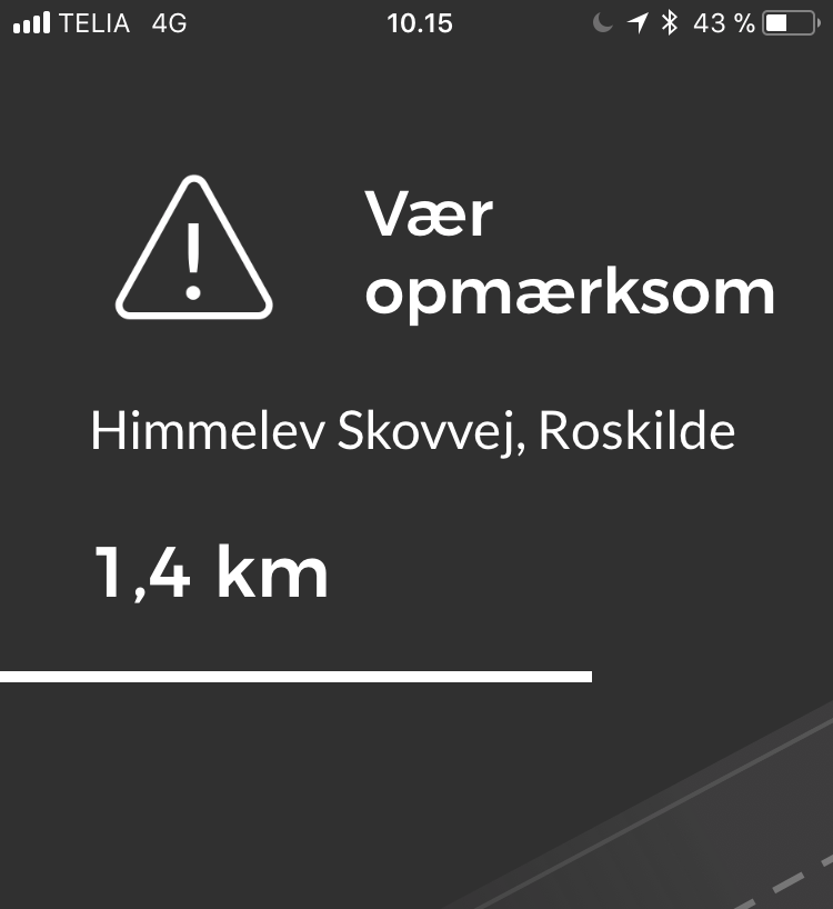 Du kan risikere, at du ikke fรฅr en advarsel ved enten en fartkontrol eller en forhindring. Sรฅ er det fordi, at du er den fรธrste pรฅ stedet, og sรฅ skal du indberette ved enten at klikke en enkelt gang for fartkontrol eller to gange for en forhindring. Det er hele grundlaget for en trafikalarm, at brugerne hjรฆlper hinanden med at indberette og bekrรฆfte, sรฅ de nรฆste pรฅ vejen fรฅr en korrekt advarsel.