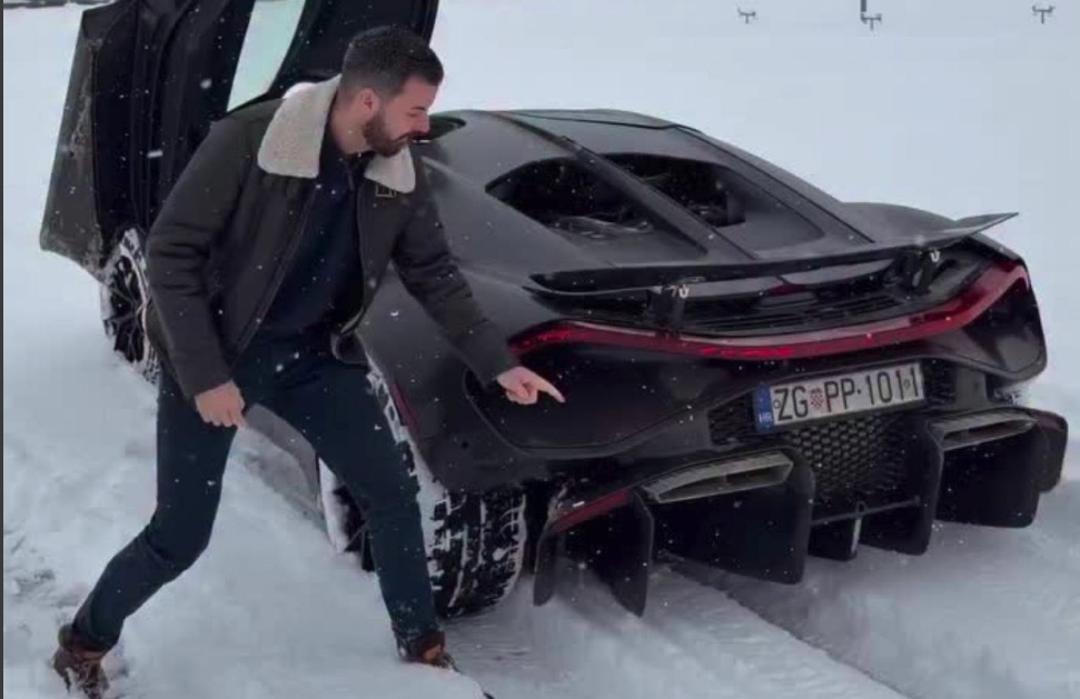Mate Rimac tester en prototype af Bugatti Tourbillion i sneen. Videoen af den ‘vilde’ kørsel gĂĄr nu sin gang pĂĄ internettet.
