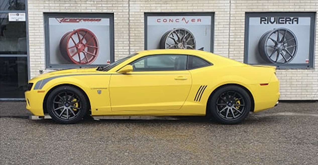 De dygtige folk hos Wheel-Parts.dk har netop haft en Camaro fra 2009 på besøg. I den unikke Bumblebee-gule farve. Ejeren drømte nemlig om et sæt federe fælge – og om at komme et stykke tætte på jorden.