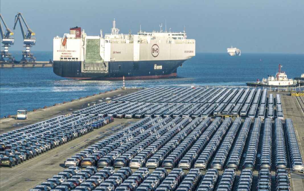Skibet, der kan transportere op til 9.200 biler, er et tegn på BYDs ambitioner om at øge sin eksport, på trods af stigende straftold på elbiler fra Kina i flere lande.