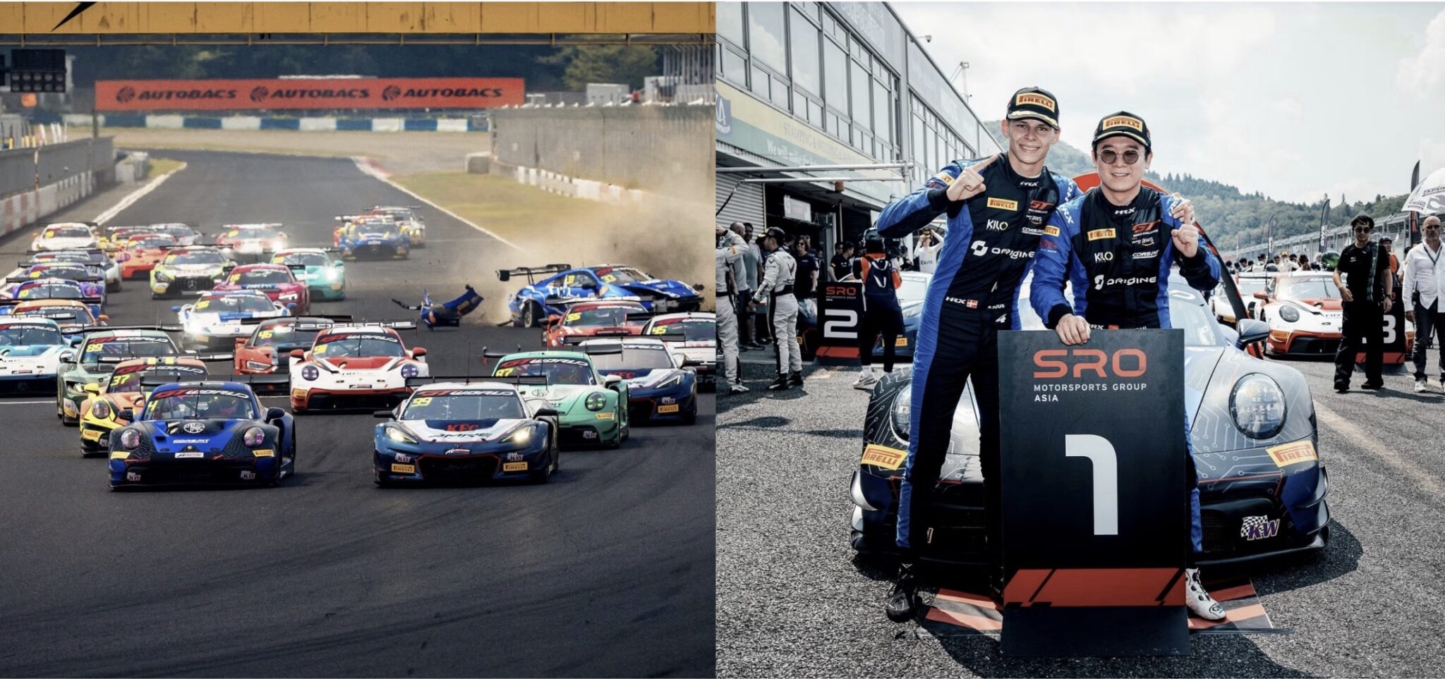 Den danske Porsche-fabrikskører Bastian Buus dominerede weekendens afdeling af GT World Challenge Asia på Okayama-banen i Japan for holdet Origine Motorsport.