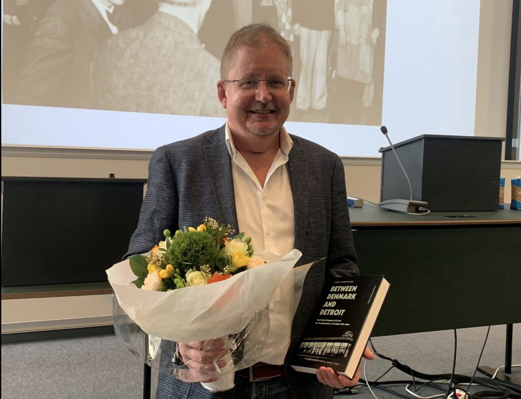 Lars Kjølhede Christensen er museumsinspektør og seniorforsker. Men nu kan han også kalde sig professor – eller helt konkret dr.phil – efter at have forsvaret sin doktordisputats “Between Denmark and Detroit – Ford Motor Company A/S and the Transformation of Fordism 1919-1966”.