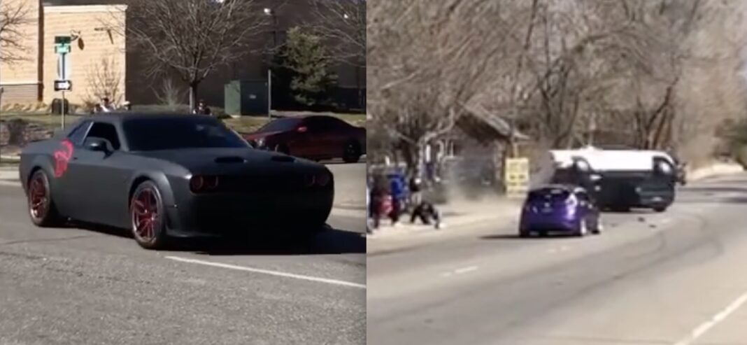 En Dodge Challenger SRT giver den gas på en helt lige vej, hvilket normalt ikke skaber de store problemer. Men af en eller anden årsag ryger bagenden ud til højre, og så går det rigtig galt.