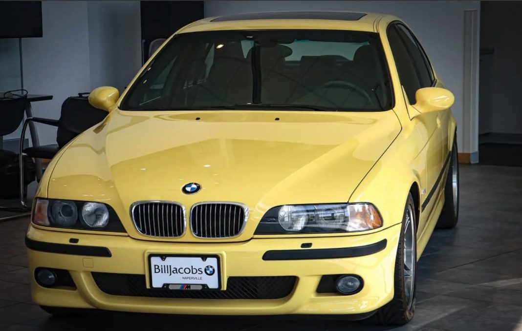 I Naperville, Illinois, USA, stĂ¥r en meget gul og givet vis meget ensom BMW E39 M5 og venter pĂ¥ sin næste ejer. Ifølge forhandleren har bilen kun kørt 1.018 kilometer.