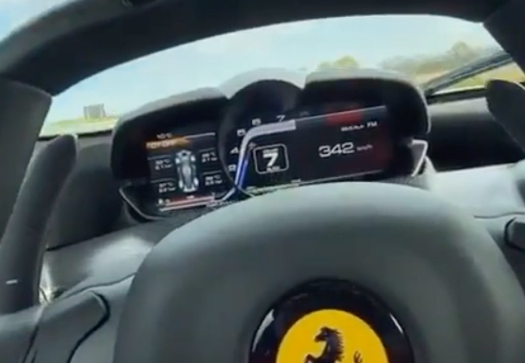 I videoen, som du kan se længere nede i artiklen, er et eksemplar af den italianske hyperbil sluppet løs på et stykke Autobahn med fri hastighed.