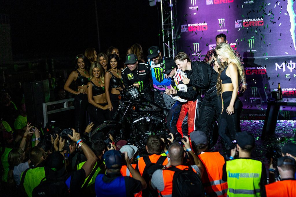 Når der står Gymkhana og Ken Block på plakaten, er der ikke sparet på noget som helst – heller ikke på de mange stjerner, der er officielle deltagere i konkurrencen.