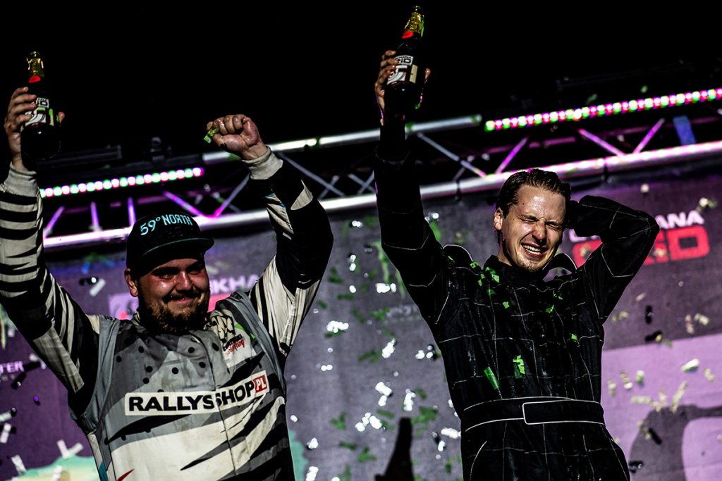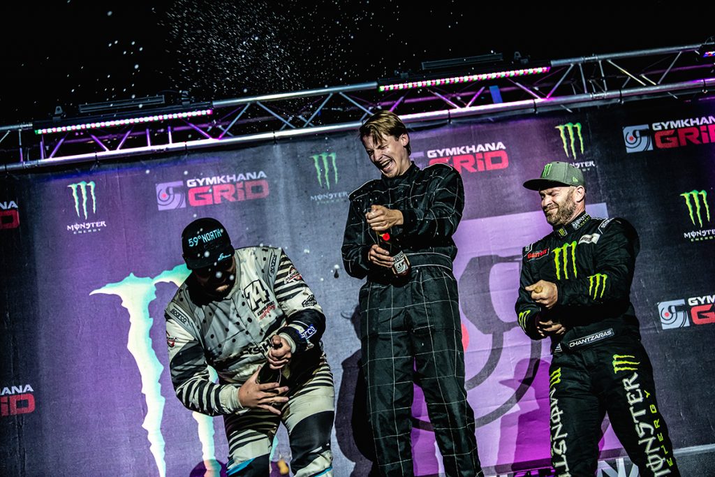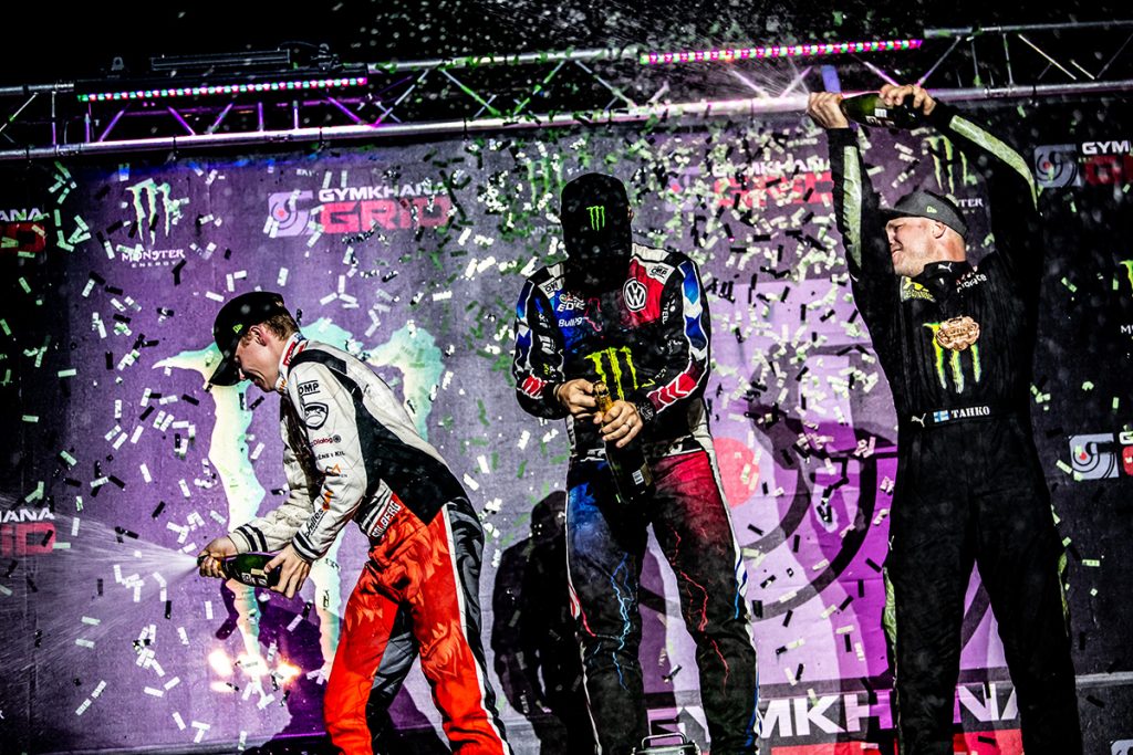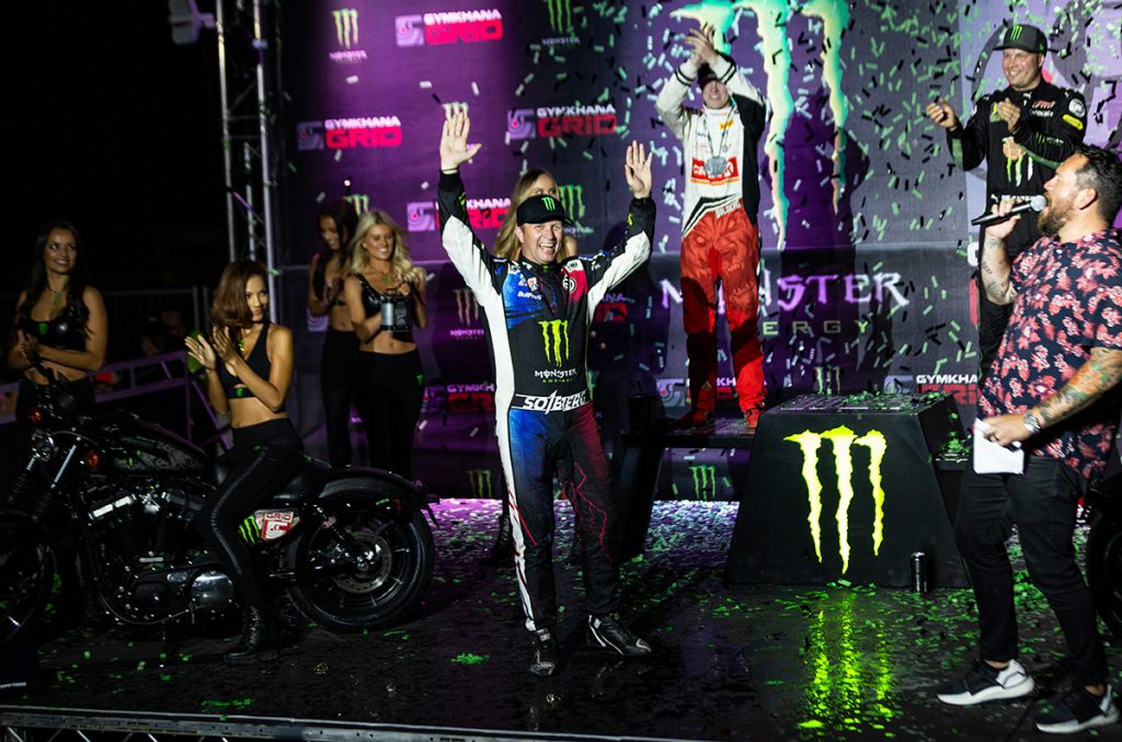 Da weekendens vindere skulle findes, var da da også de helt store navne, der stod øverst på skamlen og sprayede champagne på hinanden og de smukke Monster-babes. Helt i toppen stod Petter Solberg med sønnike på andenpladsen i den lynhurtige AWD-klasse (firehjulstræk).