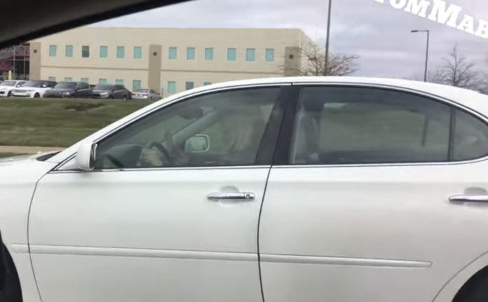 En dame kører bil, imens hun skriver SMS’er. Det synes en mand er noget skidt, så han skal da lige filme det.