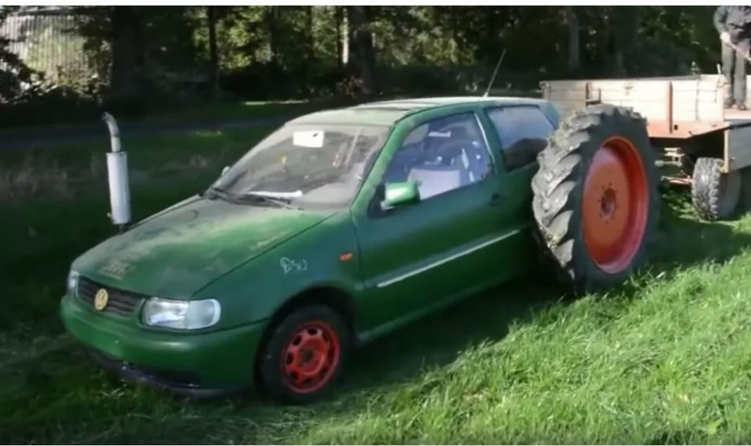 Men jo, den her er god nok. En tysk landmand har forvandlet en grøn Volkswagen Polo 6N til en traktor.