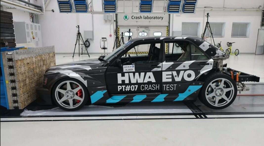 Det Mercedes-kontrollerede HWA har smadret en af deres egne prototyper af den genfødte 190E Evolution II i en crashtest. Bilen koster fra 5,3 millioner kroner.