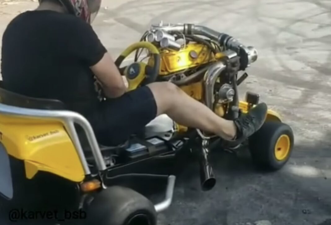 Nogle gale mennesker har taget en gokart og monteret en motor fra en gadebil på den. Det gør den i stand til at lave voldsomme mængder røg. Vi er fans!