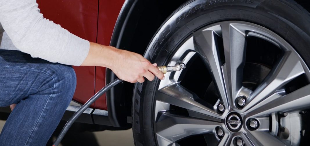 Når du fylder luft i dækkene, dytter bilen, når det korrekte lufttryk er nået. Det betyder, at føreren ikke behøver at anvende en separat trykmåler under påfyldningen.