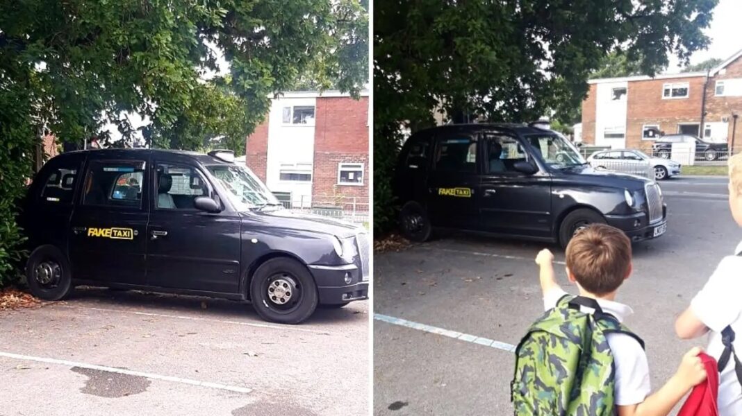 LadBible har ikke kunnet opklare, hvorfor ‘taxaen’ stod parkeret ved en pub blot 200 meter fra skolen. Her havde den ifølge en forældre, som tog et billede af den berømte ‘hyrevogn’, i øvrigt stået hele dagen.