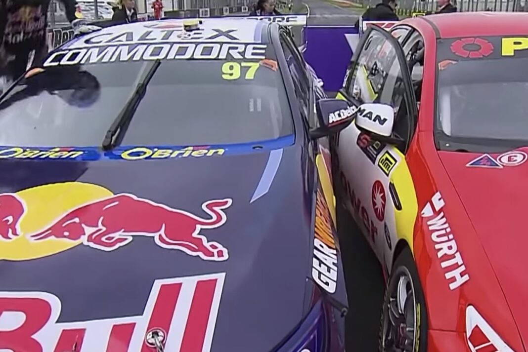 Denne australske V8 Supercar-kører ville i hvert fald sikre sig, at samtlige blitzlys faldt på ham. Så han parkerede sin højrestyrede racer millimeter fra førerdøren hos nummer to.