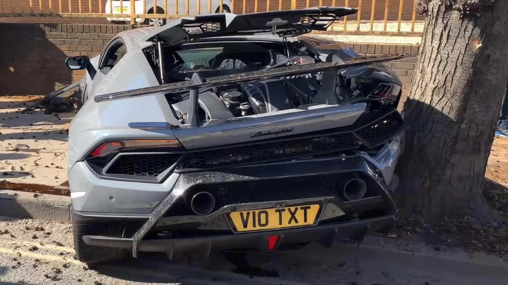 Klaphat går for tidligt på gassen i sin hyperhurtige Lamborghini – ender i vejtræ