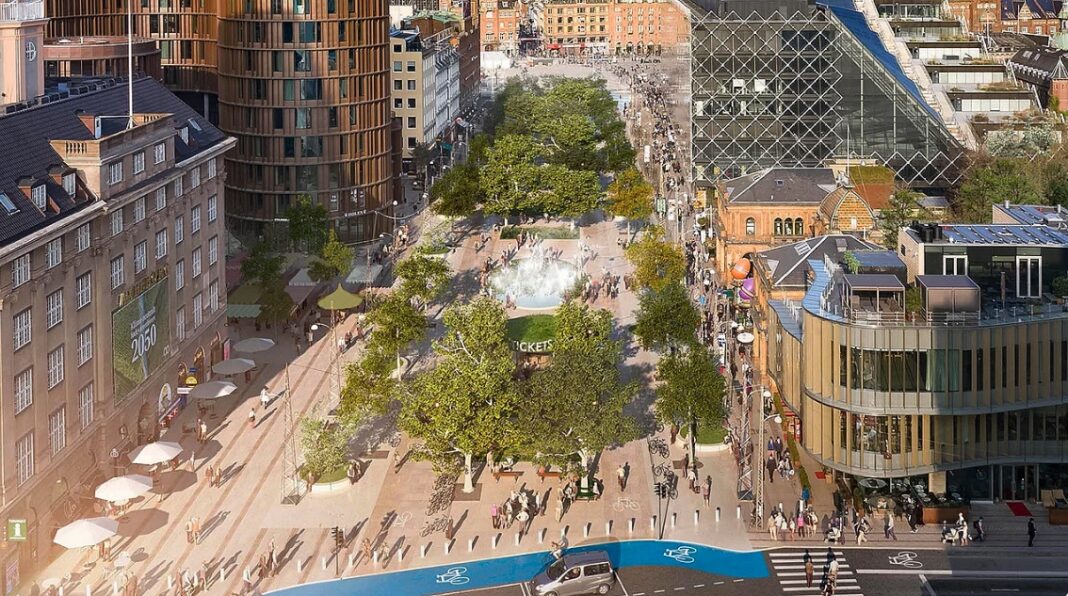 Ifølge TV2 Kosmopols oplysninger skal der laves et større, grønt område mellem Rådhuspladsen og Bernstorffsgade, og det skubber altså bilerne ud.
