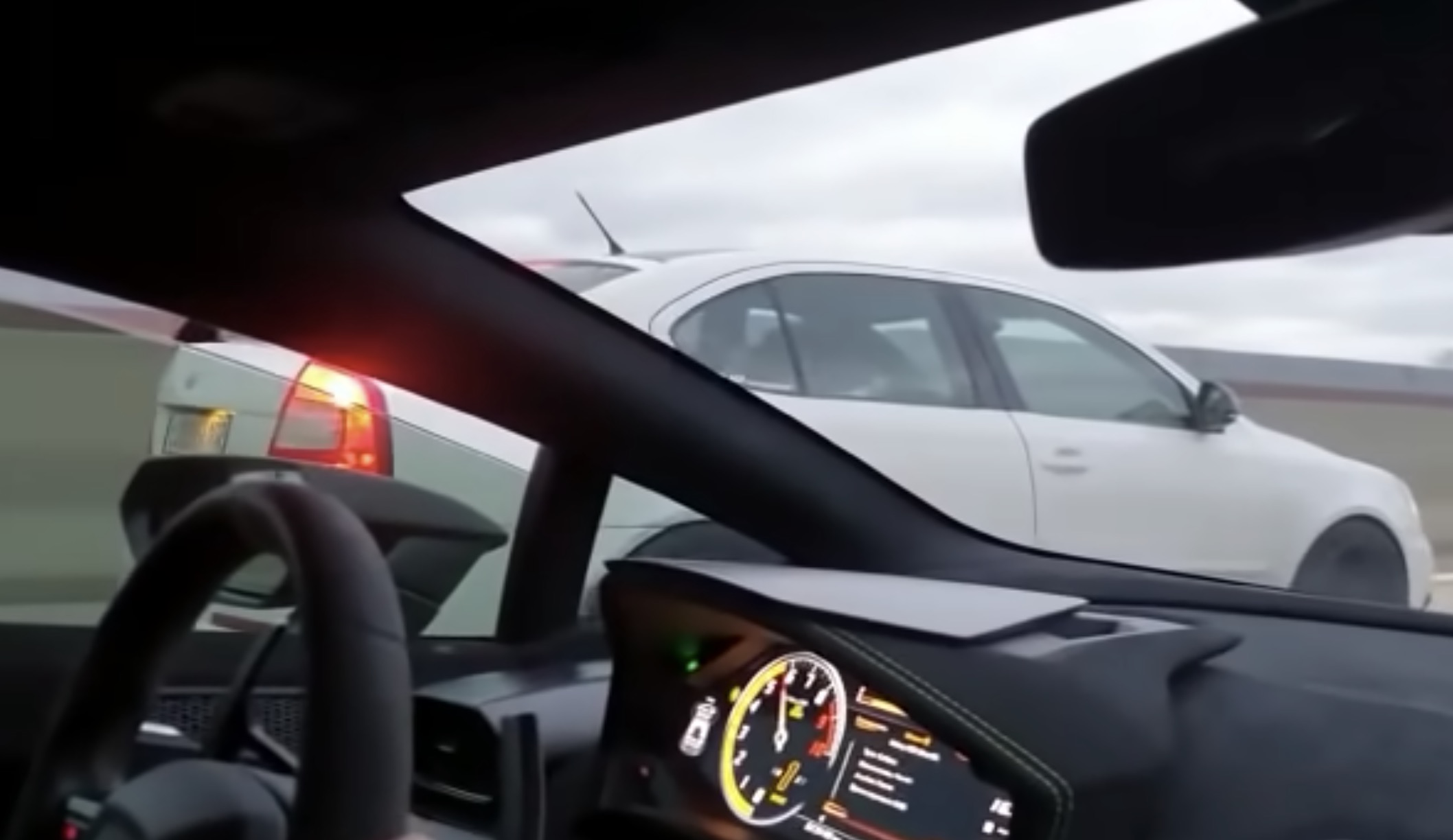 Og det er præcis, hvad der sker herunder. En Lamborghini Huracan Performante kan ikke hænge på den hvide familie-Skoda.