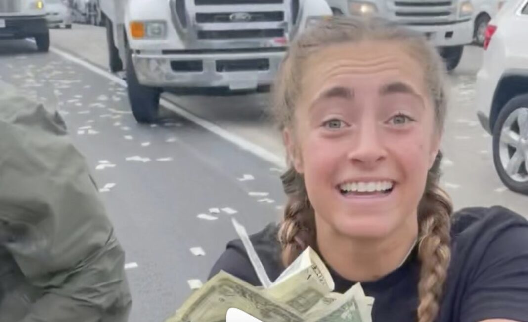 Tiktok-brugere filmede den selv, mens de løb rundt efter pengesedler på en motorvej i den amerikanske by Carlsbad i USA, hvor en dørene på en pengetransport var sprunget op.