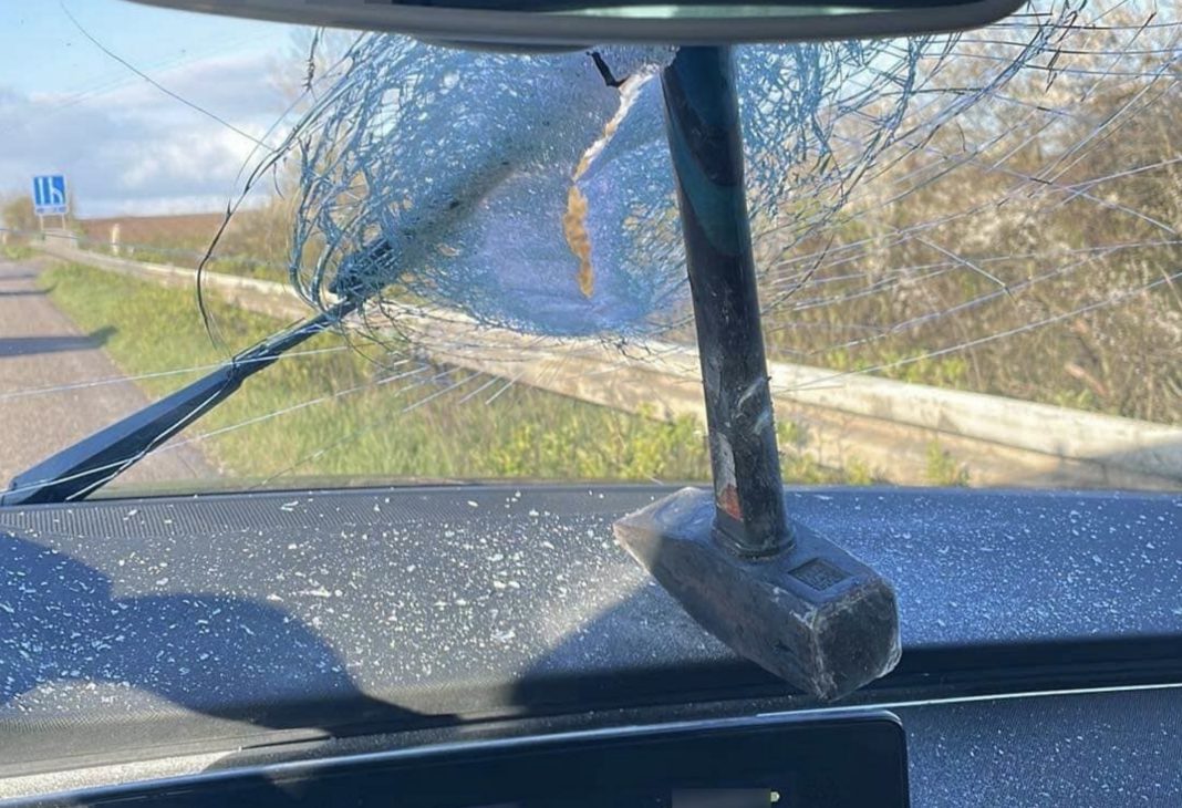 Onsdag morgen har en kvindelig bilist formentlig fået sig noget af et chok, da en mukkert kom flyvende på motorvejen ved Kolding kun for at kile sig fast i forruden på hendes Skoda.