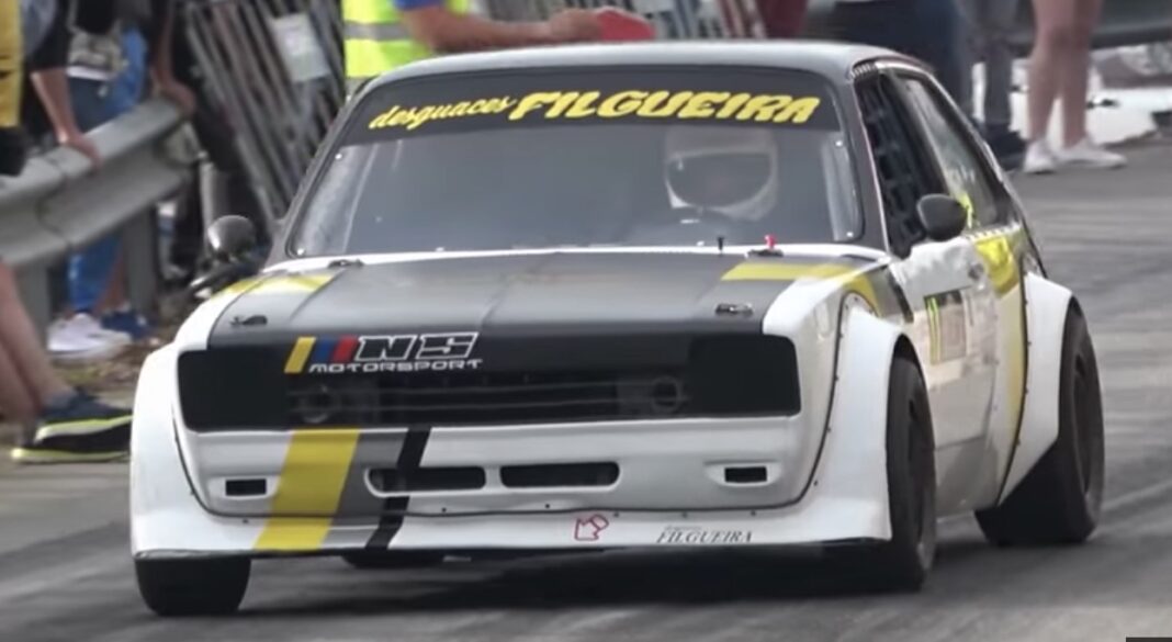 Det er Jonathan Portas, som har bygget en gammel Opel Corsa City om til en hardcore racer. Hovedingrediensen er motoren fra en Suzuki GSX-R1000 med 180 hk. Men bedst af alt tager motoren 12.000 omdrejninger, så lyden er så vild, som man kan forestille sig – og håbe på.