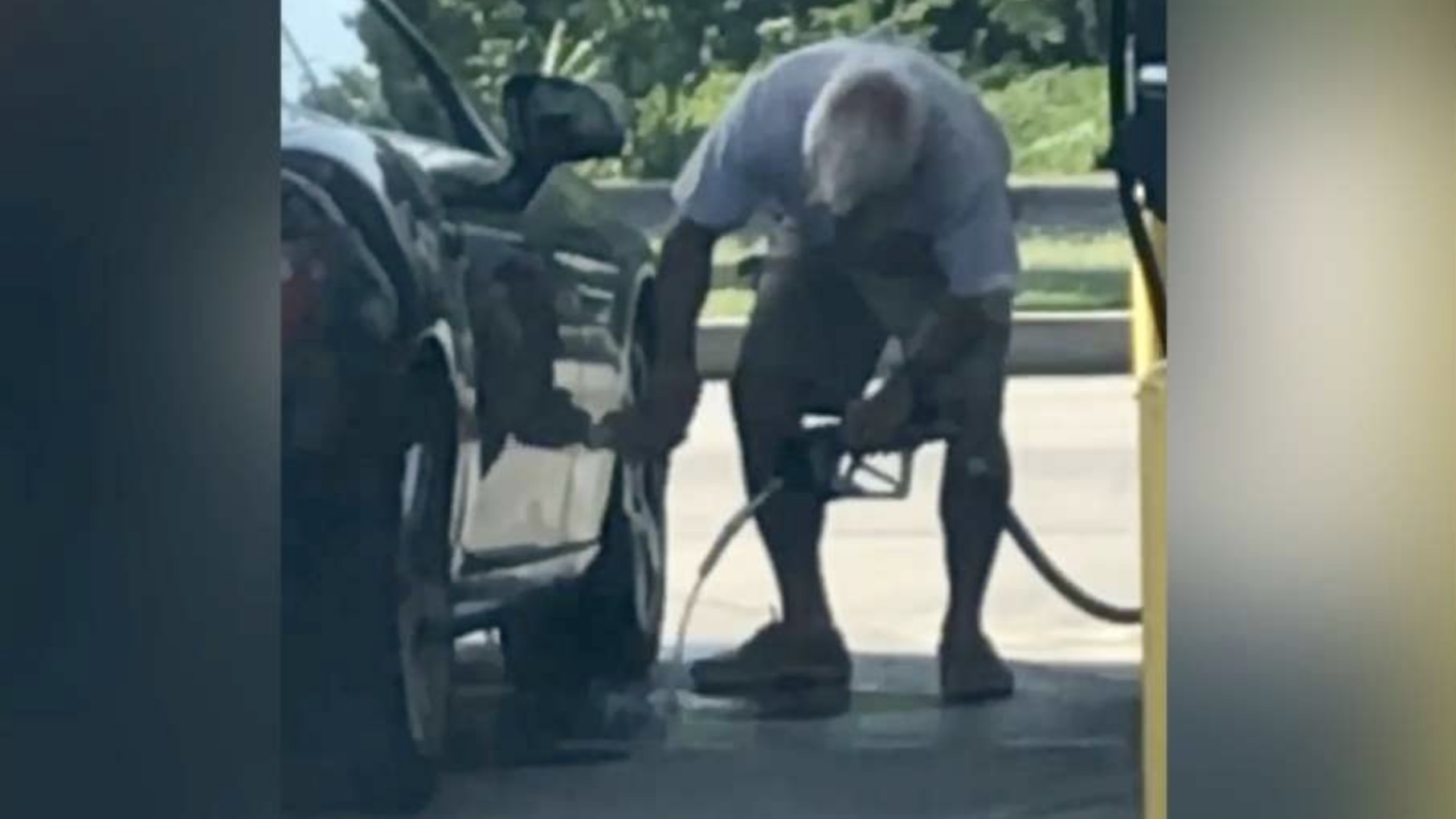 Ja, han ser en anden bilist vaske sin Mercedes SLK i benzin – både fælge og paneler får en ordentlig tur… Kan det næsten blive dummere? Oh yes, sir!