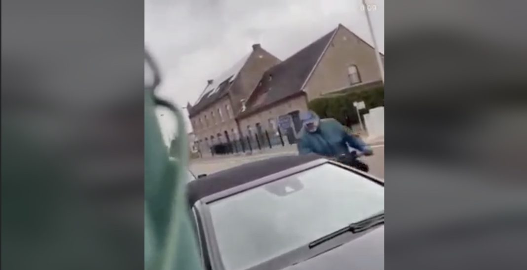 Man skal selvfølgelig hverken spytte eller slå på nogen. Heller ikke i trafikken. Men det forstår cyklisten her tilsyneladende ikke. Heldigvis står karma klar til længere fremme.