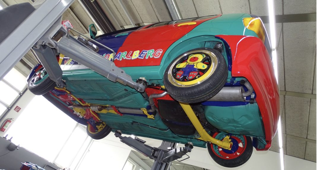 I hvert fald på Rene Petz’ Volkswagen Polo. Som i forvejen ikke er en helt almindelig VW Polo men én af blot 3.806 biler, som fabrikken producerede i den mangefarvede lakering.