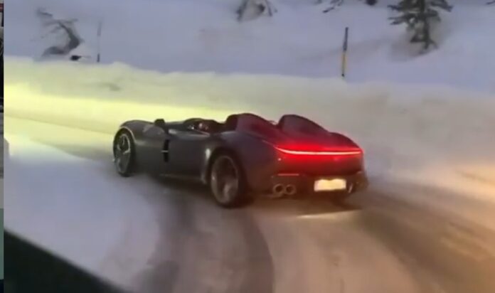 Men det er alligevel, hvad ejeren af den sjældne Ferrari Monza SP2 gør i klippet herunder. Monza SP2 er produceret i et meget lille antal, og den koster 12 millioner kroner plus ekstraudstyr og eventuelle danske afgifter.