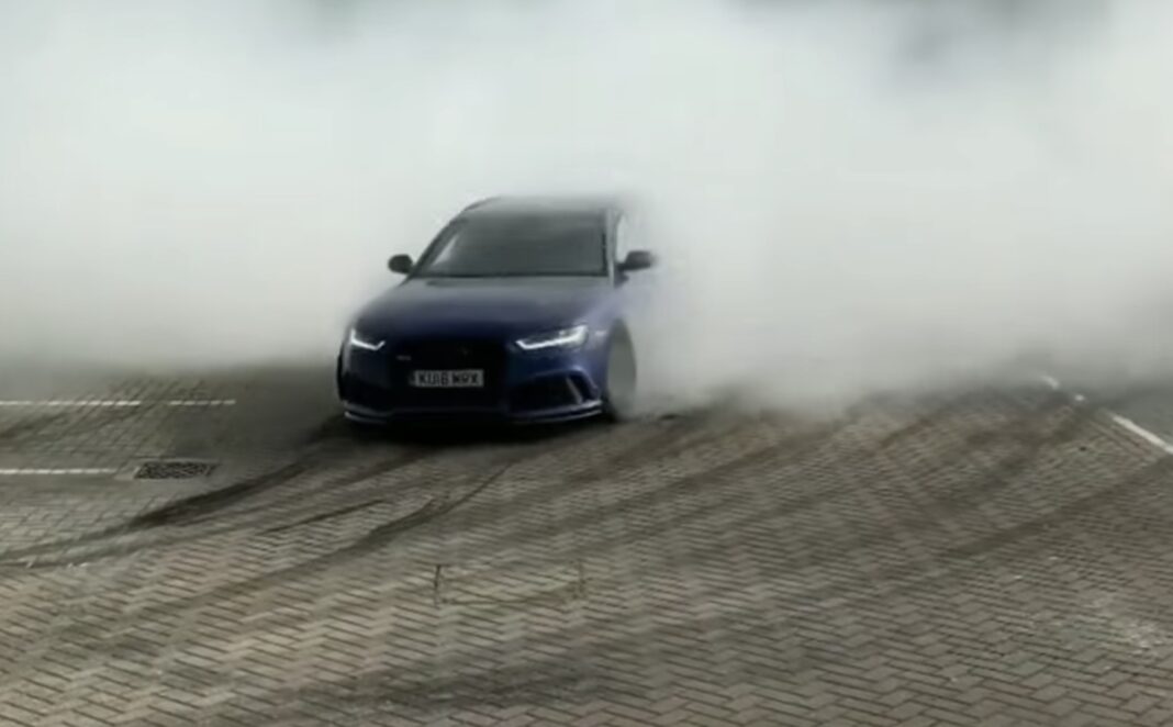 Men det er intet problem for RS6’eren i videoen herunder. Den har rigeligt med power og en gal chauffør bag rattet, så der er røg i overflod.