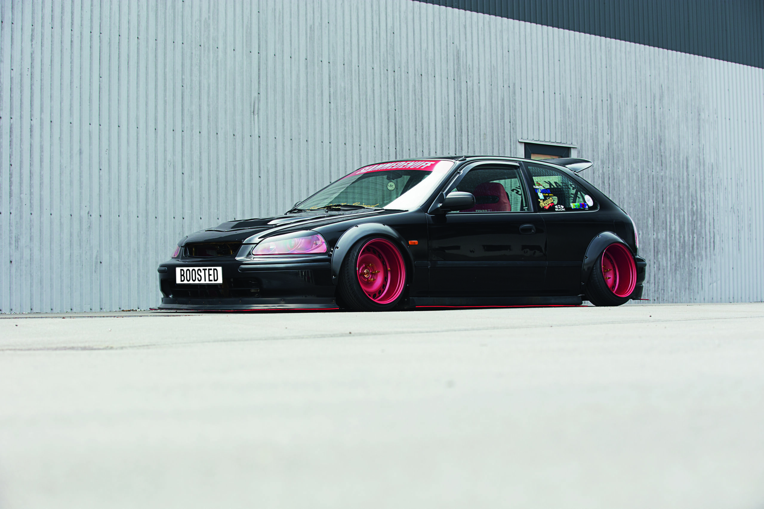 Som den står her med sine popnittede, 100 millimeter skærme fra en Nissan S13, røde lygter og fælge med en bredde på tærsklen til det kriminelle, virker det nærmest utænkeligt, at Dennis købte sin sorte Honda Civic EJ9 årgang 1998 helt original tilbage i 2015.