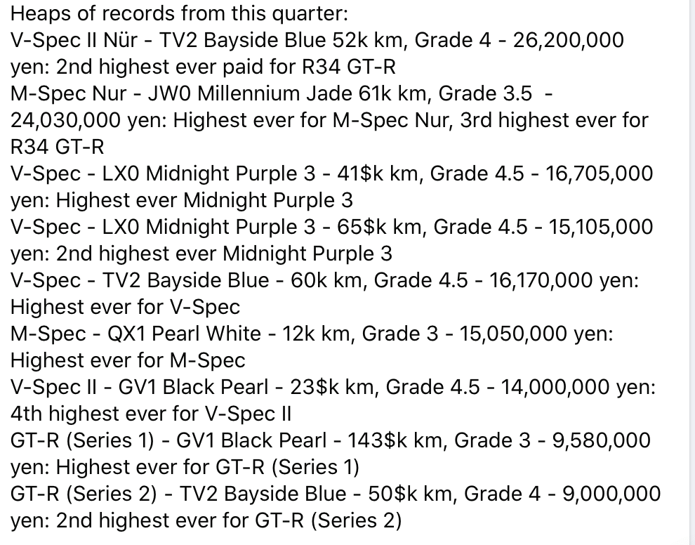 Ifølge gtr-registry drejer det sig om en GT-R V Spec II Nur i farven Bayside Blue. Med 52.000 kilometer på klokken blev den solgt for 26,2 millioner japanske yen. Det er godt en kvart million dollars eller tæt på 1.6 millioner danske kroner.
