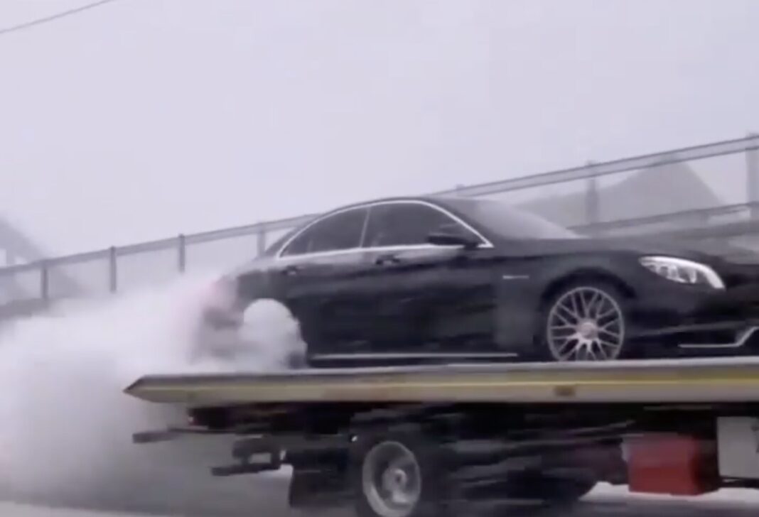 Selvom bilen er læsset pĂ¥ et fejeblad, behøver du jo ikke kede dig imens. Det har en russisk gut fundet ud af.