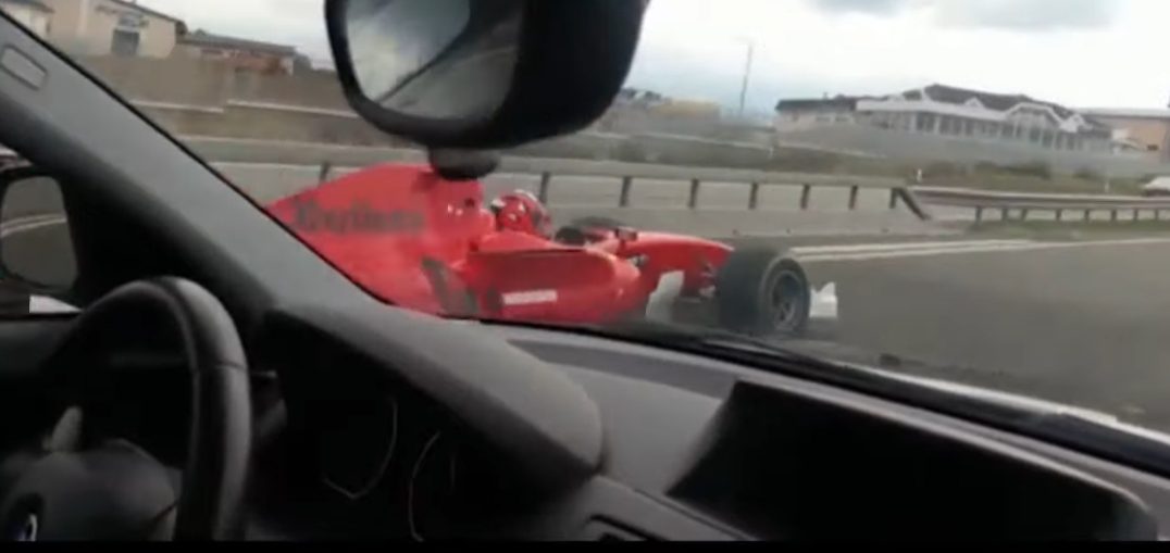 Det er ikke hver dag, man ser en Formel 1-racer, og da slet ikke en på en ganske almindelig motorvej.