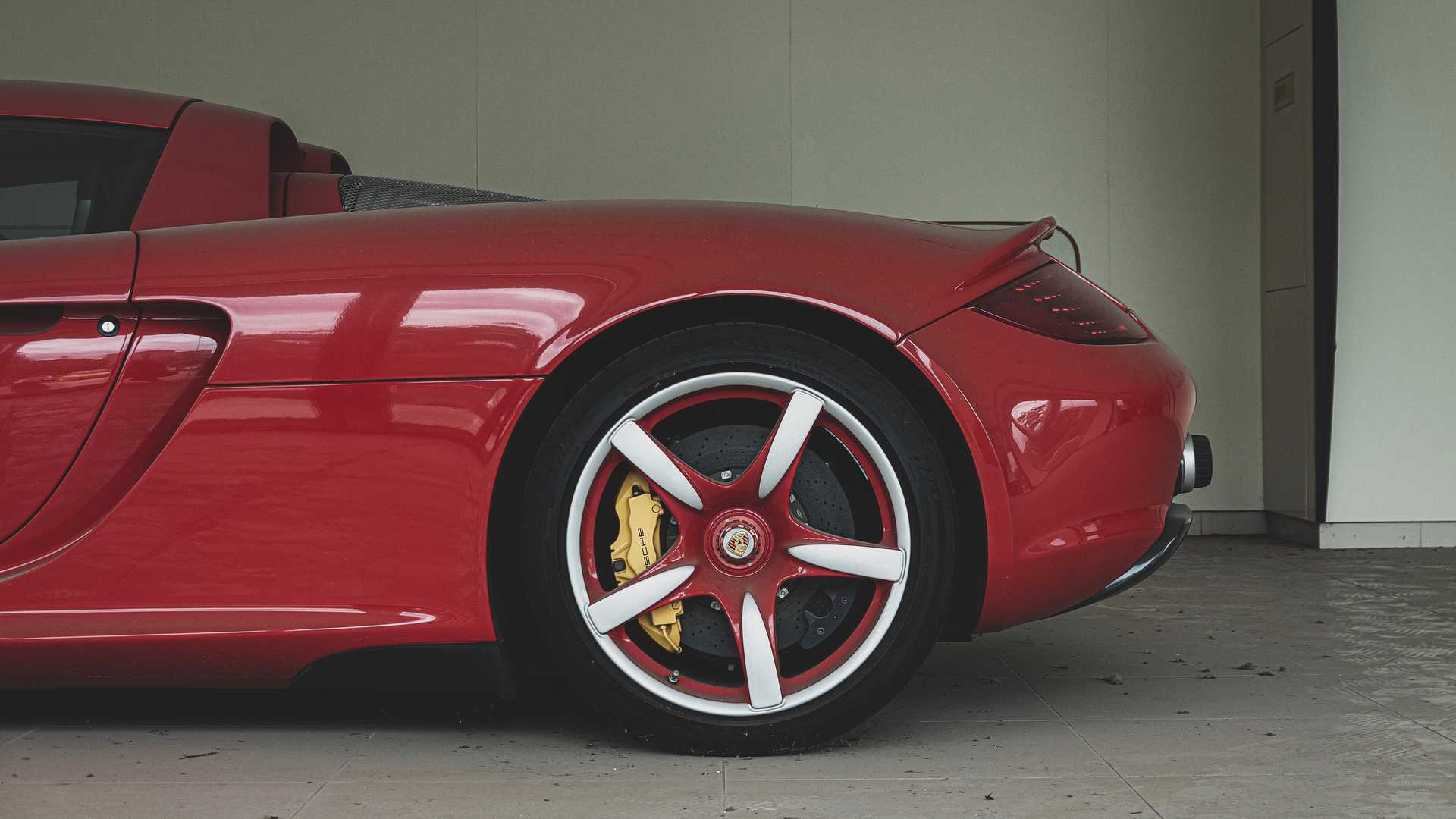 Men særligt Carrera GT’en er interessant. Det skulle eftersigende være nummer 1.255 ud af bare 1.270 producerede af den vilde 5.7-liters V10-maskine. Her i Zanzibar-rød metalic med matchende hjul med centermøtrik. Et karakterisktisk Carrera GT-træk.