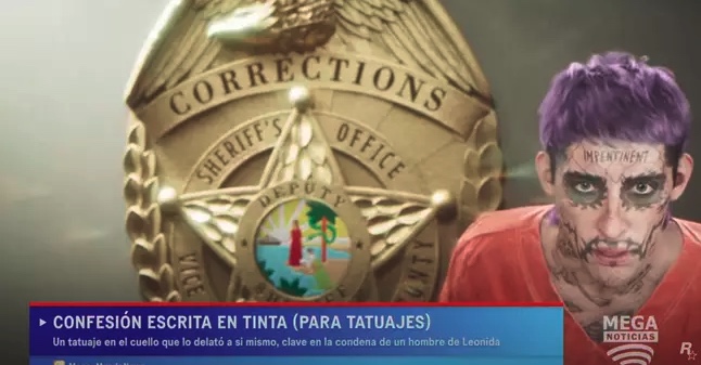 Rockstar har da også ganske rigtigt en meget tatoveret karakter med i den første trailer til spillet. En karakter, der i lighed med The Florida Joker ikke kan stave.
