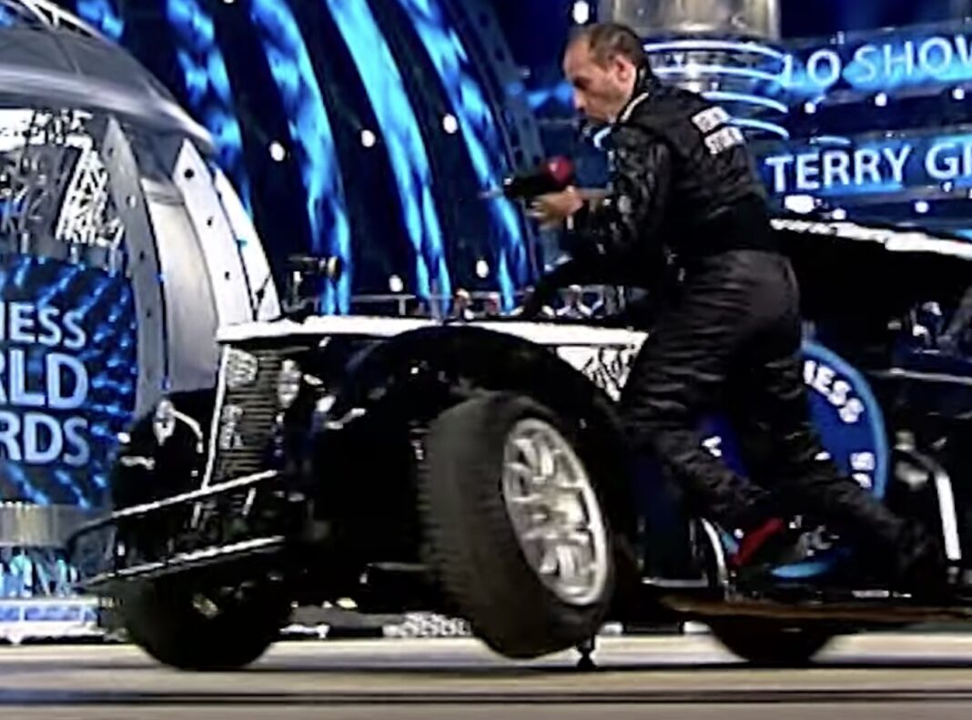 Det er fra selveste Guiness World Records, hvor Terry nu har rekorden for hurtigste tid i at skifte et hjul, imens en bil kører. Ja, det lyder skørt, og det er det også.