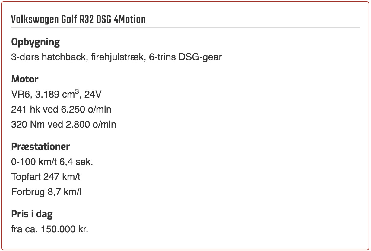 I 2003 skete der noget vigtigt, som alle inderst inde ved, men som ingen bilfolk rigtig taler om. VW Golf R32 blev nemlig præsenteret, og under den klassisk Golf-habit gemte den på en teknisk hemmelighed, som vi alle sammen er glade for i dag. Vi starter dog lige med at gennemgå selve bilen, som havde en hel del detaljer at byde på.