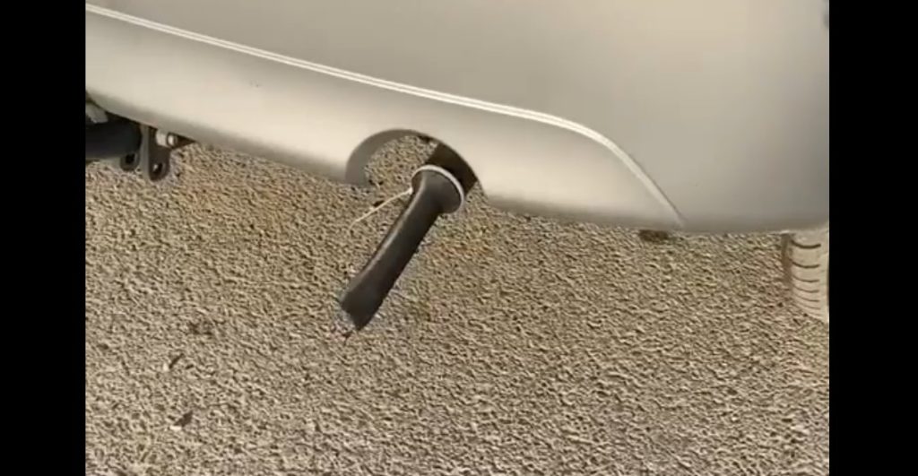 Så går du ud til din bil og monterer det cirka 20 centimer slange med hjælp fra spændebåndet.