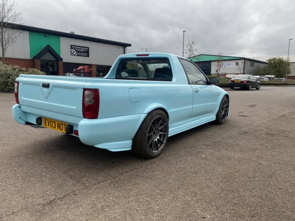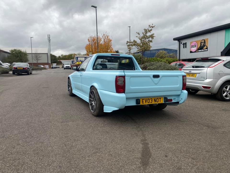 Indrømmet, den babyblå pickup er faktisk slet ikke en Mitsubishi Lancer Evolution, der er hugget op på en lidt alternativ måde.. men det ligner.