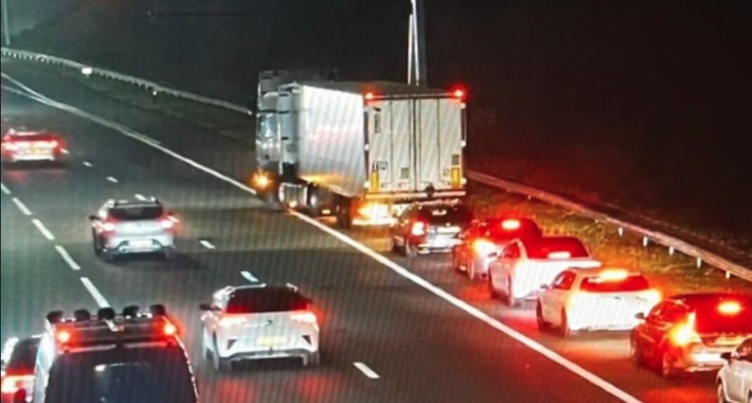Her holdt en lastbil parkeret på sporet op til afkørslen. Det viste livebillederne fra motorvejen med alt tydelighed.