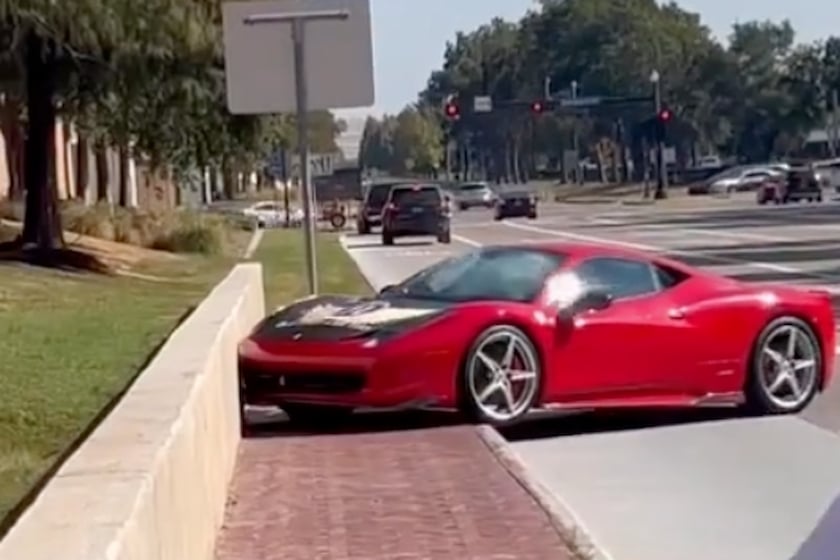 Det er et af de langsomste færdselsuheld, vi har set. I hvert fald hvor en Ferrari er involveret.