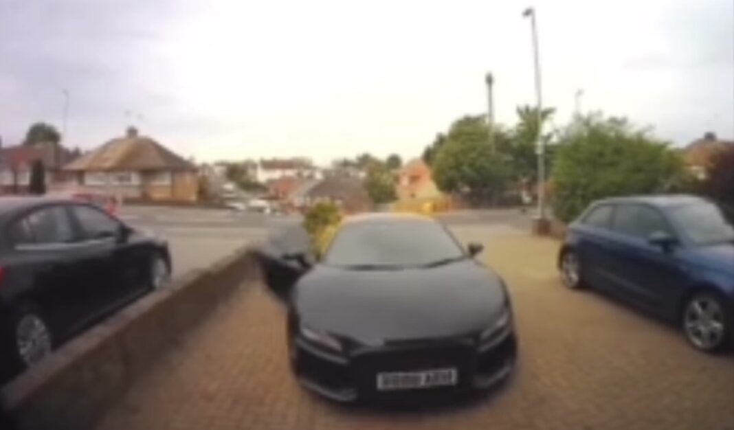 Vi er ikke klar over, om gutten i videoen her ejer bilen eller ej, men faktum er dog, at han går helt galt i byen, da han får startet den fede Audi R8. Det ser ud til, at han får den startet, og så kommer han til at lette for hurtigt på koblingen – formodentlig uden at vide, at bilen står i gear. Og BANG siger det så.