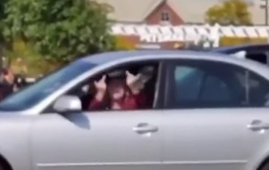 Det er så dumt, som det kan være. Kvinden i videoen herunder er hidsig på en flok Trump-supportere, og det vil hun så lige gøre opmærksom på ved at smide et par fuck-fingre ud ad vinduet.
