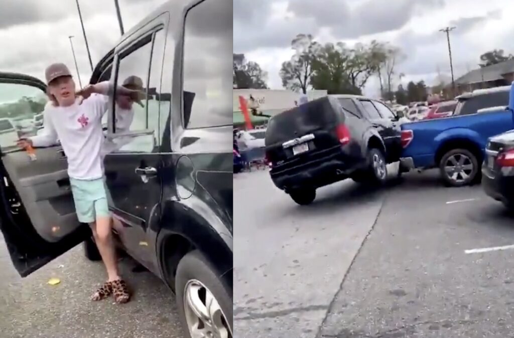 En ung knægt har lige smadret ind i en parkeret bil, og da han forsøger at stikke af fra uheldet, hamrer han sin mors bil lige ind i endnu en parkeret bil… Flot.